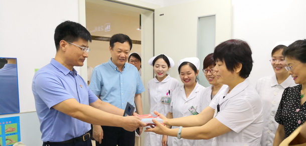 7月26日,正是中伏與大暑時節(jié),天氣炎熱難耐,德州市人民醫(yī)院黨委書記、理事長程吉東,黨委委員、工會主席、院長助理張旭斌帶領(lǐng)辦公室、工會和宣傳科工作人員