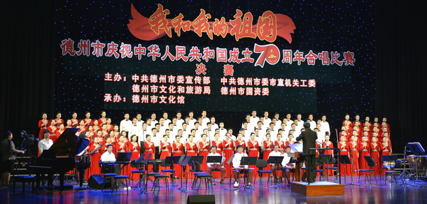 9月26日,我和我的祖國德州市慶祝中華人民共和國成立70周年合唱比賽總決賽暨頒獎晚會在德州大劇院拉開帷幕。經(jīng)初賽、復賽后,來自市直有關(guān)部門、單位,市屬各國有企業(yè)以及各縣