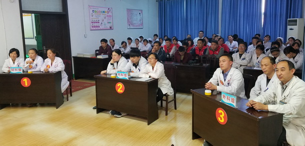 10月15日下午2點(diǎn),鄆城縣郭屯鎮(zhèn)中心衛(wèi)生院會議室內(nèi)氣氛熱烈、座無虛席。心肌梗死時最先出現(xiàn)的癥狀是什么?請內(nèi)科組1號選手回答。答案是心絞痛。恭喜你,回答正