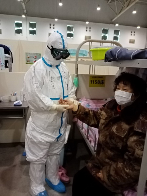 “我能記住分管的100多位病人的名字,熟悉每個病人的病情、用藥及診療方案,跟患者像朋友一樣,互相打氣,加油鼓勵,他們對醫(yī)生的信任、對我們的關(guān)心也給了我們很大的鼓勵。”這是濱州醫(yī)學(xué)院2004級校友、廣東省清遠(yuǎn)市人民醫(yī)院中醫(yī)科專家、廣東省援助湖北第十一批醫(yī)療隊員、東西湖方艙醫(yī)院醫(yī)生、中醫(yī)診療專家組宣傳組長岳紅梅在和同學(xué)們分享她的戰(zhàn)“疫”故事。在講到自己能上“前線”時,她激動的說,“其實我們都是祖國的孩子,在祖國母親需要的時候,我們要盡自己的一份力。” 在抗疫工作中,岳紅梅大力提倡中醫(yī)藥治療,取得了十分顯著的療效。“新冠肺炎有很大幾率轉(zhuǎn)成高危病癥,但運(yùn)用中醫(yī)藥可以擁有特別好的效果,這說明,只要辯證把握,中醫(yī)同樣能夠治療急性病癥。”她鼓勵同學(xué)們一定要有專業(yè)自信,增強(qiáng)不斷探索醫(yī)學(xué)知識的興趣,勇挑醫(yī)者重任,在發(fā)揚(yáng)中醫(yī)傳統(tǒng)、護(hù)佑生命健康的實踐中,綻放靚麗的青春。