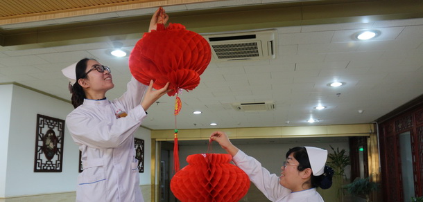 隨著新春佳節(jié)的腳步越來(lái)越近了,為了給來(lái)院患者及住院病人營(yíng)造溫馨的節(jié)日氛圍,榮成市中醫(yī)院總務(wù)科人員在門診大廳等處掛起了紅紅的燈籠。 在病房,醫(yī)護(hù)人員