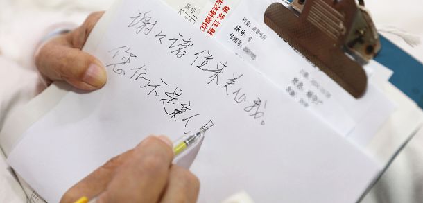 10月24日早上8點多,煙臺山醫(yī)院血管外科護士長吳艷芳收到一封特殊的“感謝信”,一張普通的打印紙上寫著幾行歪歪扭扭的字,“向白衣天使致敬,我走后要向你們送錦旗?!薄澳皇?/p>