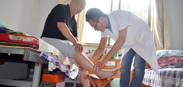 9月13日下午,來自山東省淄博市中西醫(yī)結合醫(yī)院針灸科的醫(yī)護人員一行來到駐地夕陽紅老年公寓,為這里的老人義務巡診。